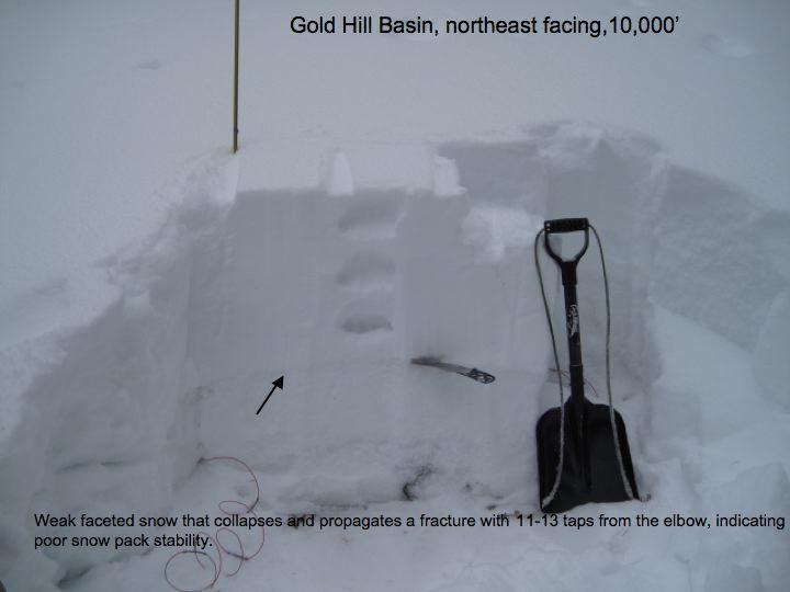 Still not that much snow in the Gold Hill area and poor snow pack stability.