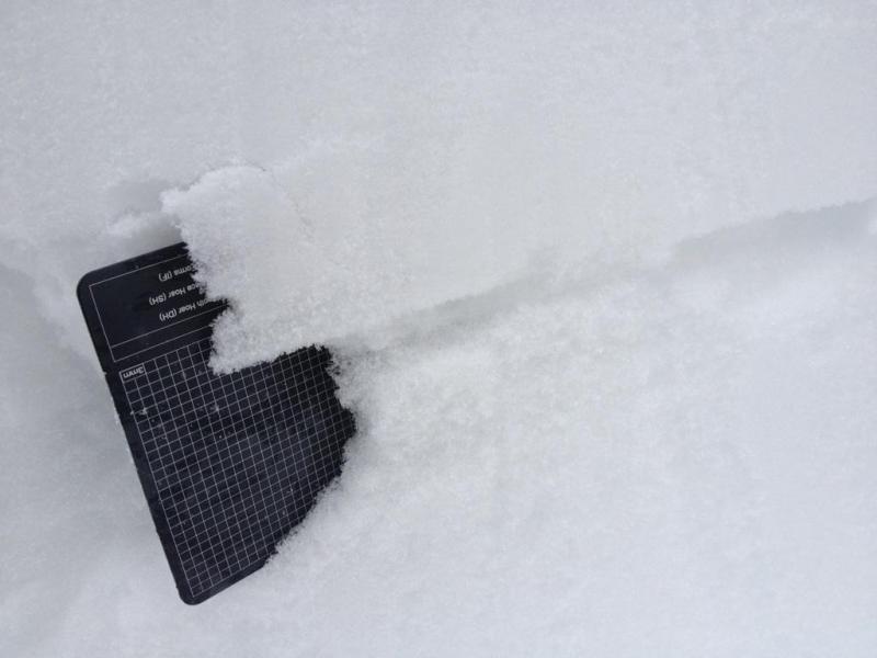 We practice our snow profile work today at 8800ft on an ENE aspect in the Snowbasin backcountry. The average HS was between 115-140cm. The snowpack consistent of new 4" 4F storm snow laying on top of a 4F stiffing to 1F slab for the upper 60-70cm of the snowpack. Below that 1F slab is a 3-5mm crust with pronounced facets above and below the crust (larger and more consistent facets on the bottom of the crust). The lower pack consistent of a mixture of rounded and faceted grains. At 20cm above the ground 3mm (Fist) angled facets where the common theme.