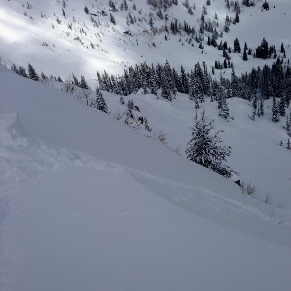 Cut a cornice on the east ridge of Patsy Marley. It was not very large, maybe half the size of a fridge, took the top 4-6" of snow down slope about 300'