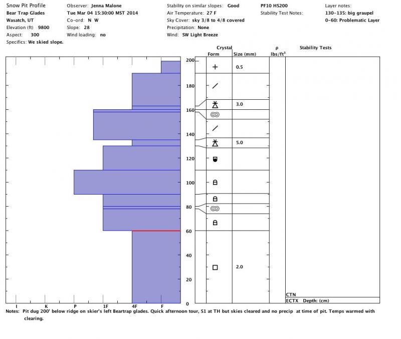 While we skied more windward aspects today, we saw heavily corniced NW ridges and localized cracking in wind loaded micro terrain.