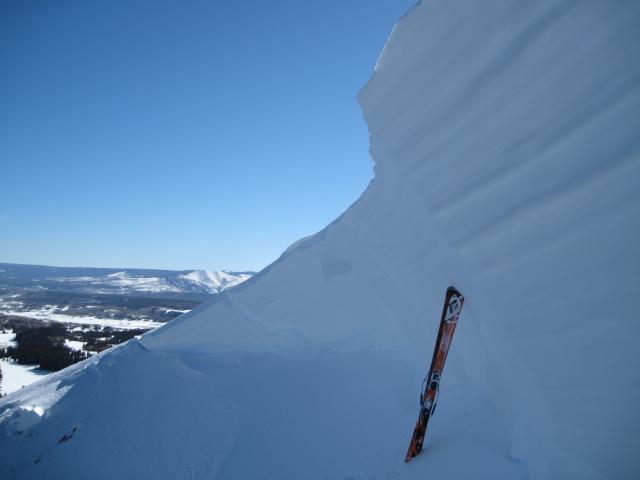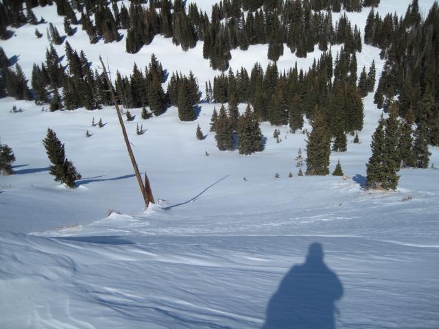 These are the types of slopes that lure us into them with nice cold powder and not too many trees. How could this slope avalanche when there is bushes and vegetation poking through the snow? Once we collapse the weak snow around the bushes and if the slope is connected to thicker snow above and to the side, we are likely dealing with a large deep avalanche.