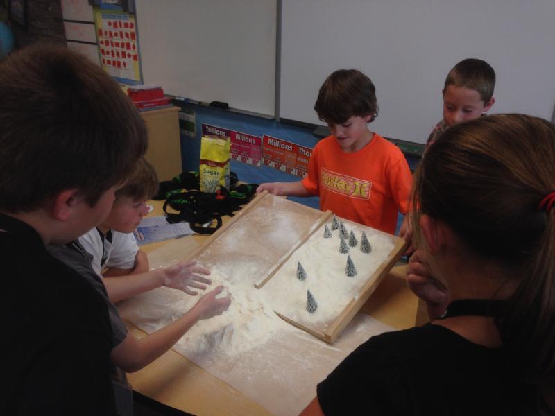 Photos show the normal wet activity off rock bands from yesterday, expect that more occurred today off the more easterly and northeasterly aspects that did not warm yesterday. Last photo is some Eden 4th graders with some sweet flour-lanches we did for science day.