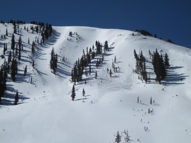 I did not notice any recent avalanche activity in my travels today, this sluffing is likely from a chunk of cornice that fell earlier in the week from strong winds.