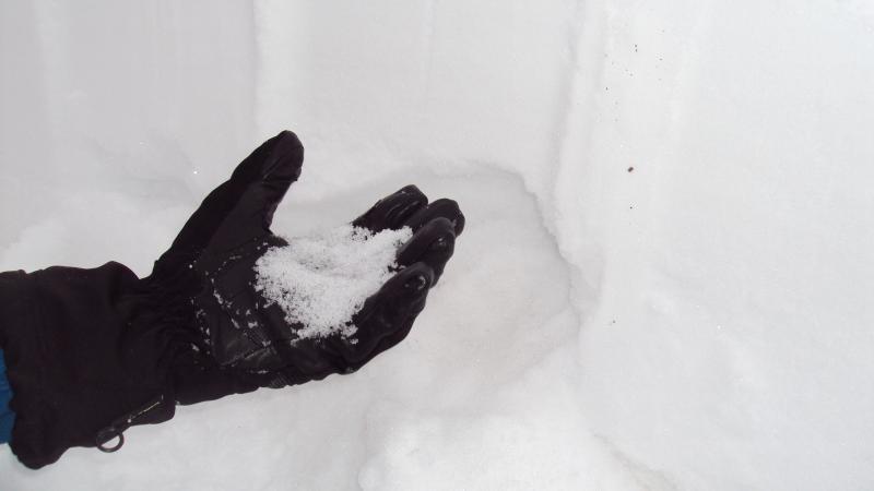 We observed 3 layers in the snow pack, the new snow which was fist hardness, a second layer with 4 fingers and the weak sugar layer near the ground. Total snow depth was 85 cm.