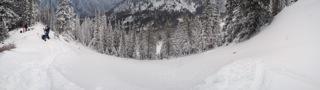 While walking along the Pink Pine ridge line, we collapsed an area that produced a significant crack. The whole open area was affected. If the area had less trees it could have slid. If the area was a few degrees steeper, it could have slid. In the photo below, the entire open area is the location I am speaking of.