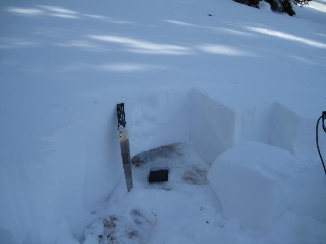 The snowpack structure is a red flag, but the snow conditions seem to be fairly quiet right now. There does not appear to be a lot of energy in the slab with the snow pits I dug today. Much of the terrain around Bald Mountain Pass is not very well connected, with lots of big rocks still poking up through .