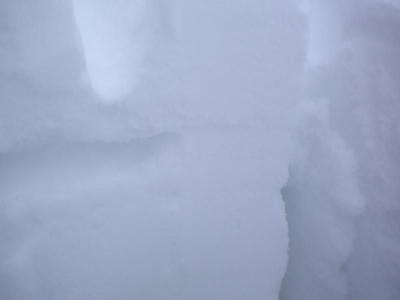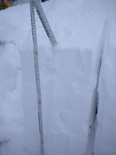 Snow depth 80 cm. CT2, ECTN3. Failed on buried surface hoar 10 cm below surface. Of more concern is a crust with a underlying faceted layer about 20 cm down although no failure was noted here on tests. The remainder of the snow pack was a consistent 1 finger structure to the brush on the ground. Ski cuts didn't produce any cracking or significant sloughing. Cornice cuts were nonproductive. Snow seemed very stable.