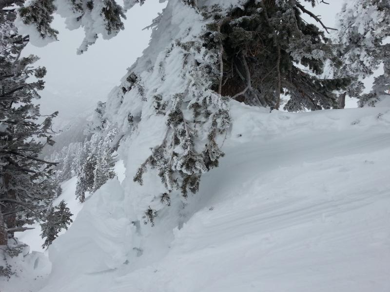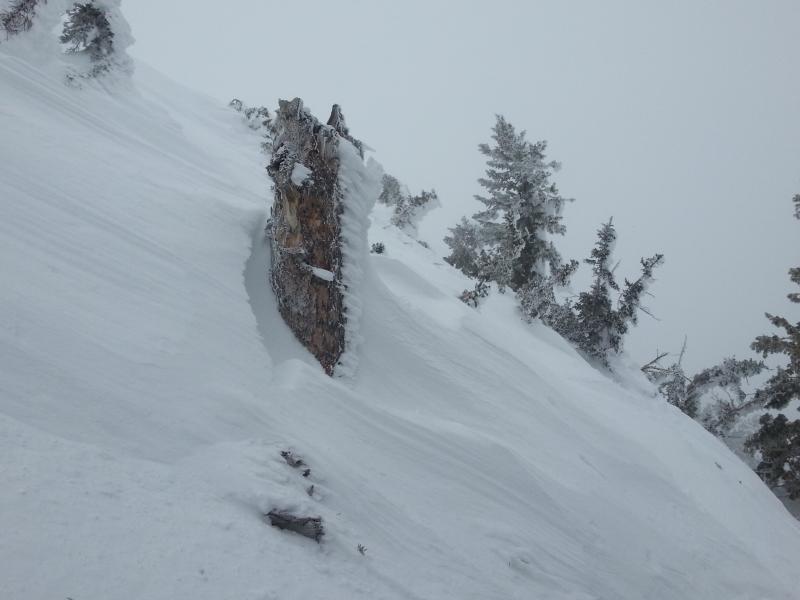Below, a 3 foot high wind sculpted feature, 9300', North facing.