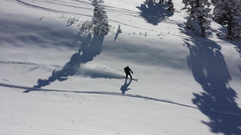 All tests over the last two days on W-NW had no results ECTX and hand pits showing good stability 8400'-9000' Tried to get the wind drifts to move with no results. One exposed N aspect at 8800' had two separate M/F crusts about 18" from surface that would come off with a moderate pull with a hand pit but could only find this in one isolated spot. Wind sheltered areas had some SH in the am. Also fog would creep up the cyn off and on all day up to 8000'.