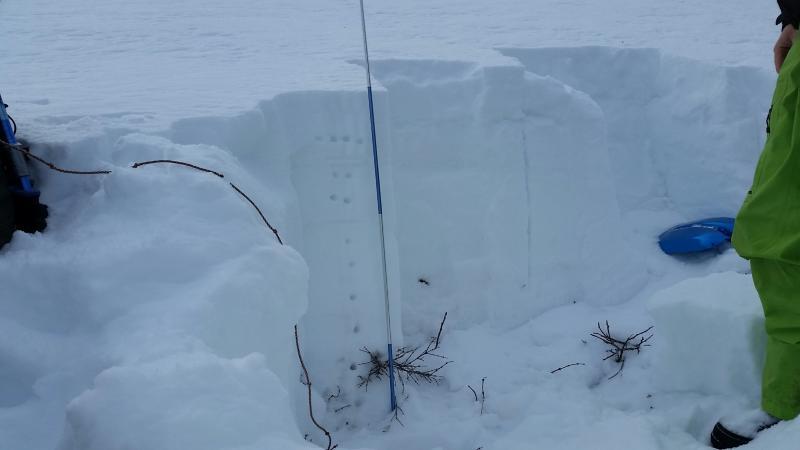 We moved to a sheltered area where the wind had not affected the snow as much and we got favorable results. Tests were done on an East facing 28 degree slope at around 8400 feet. There were no clean shears during the shovel shear test and a CT16 failure down 8 inches. However the failure would not propagate during an ECT. The snowpack is pretty thin around Willard Peak. I probed around a bunch and it was consistently 30-36 inches of dense snow. Although we did not identify much faceting in the snowpack, the surface felt loose like it is faceted. We did not notice any surface hoar in the areas we rode.