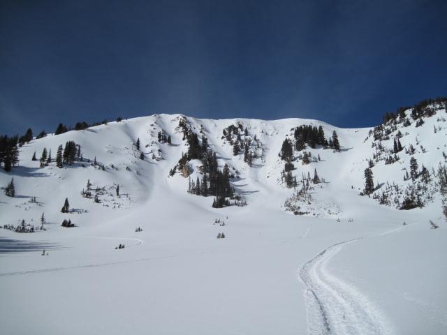I spent the day mainly on the east side of Moffit Peak and things were pretty quiet. There was some old debris from slides that likely happened during the last storm, but these only involved the storm snow.