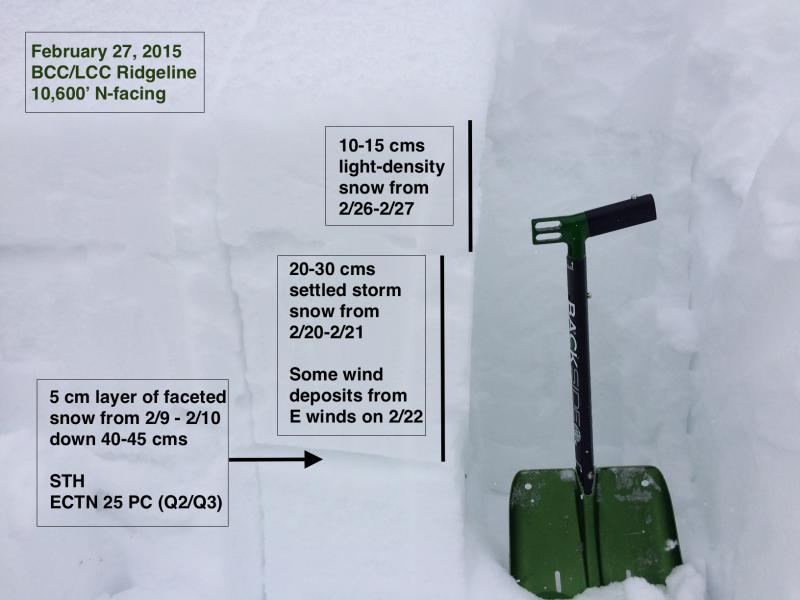 Photo shows faceted layer from 2/9 storm now down 40-45 cms.