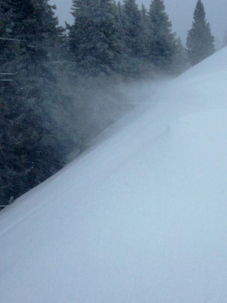 First photo - when you find a patch where the wind has scoured away all the new snow, down to ice, it's time to look for where that snow has gone.