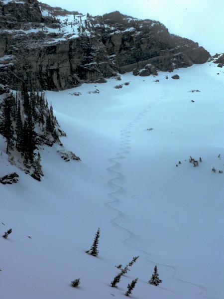 Hazard depends on new snow amounts and wind, things seemed pretty glued in place today with wet snow falling on a not so frozen surface, any new instabilities would be between todays snow and what falls tonight, it's possible that any avalanching would gouge down to the old bed surface.