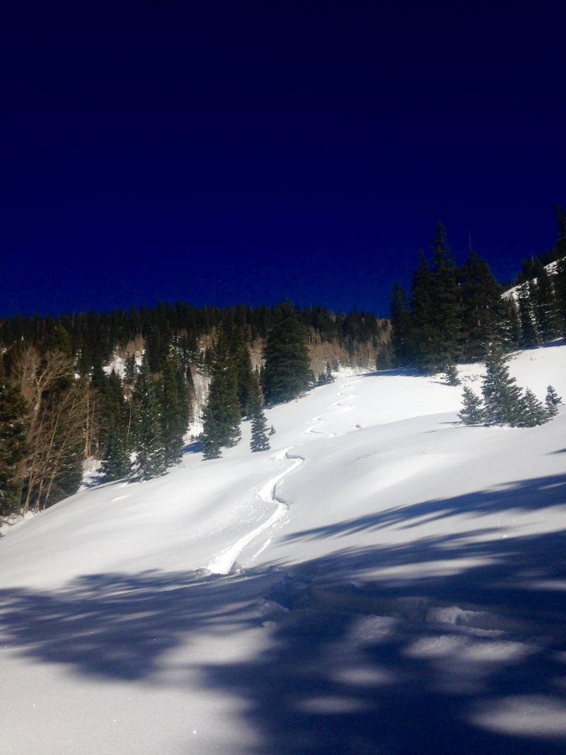 High quality but, variable conditions. Springy and soft wind lips up high. Creamy in the middle. Crust and dense near the bottom where it was sun affected. Skiing was about boot top deep.