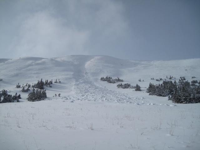 I did come across this natural slide that likely happened during the storm with strong southwest winds. My guess is the winds overloaded an early season weak snowpack and this small pocket released from just below the ridge line. There was more evidense of a couple smaller natural slides adjacent to this larger one. Good information that there is enough snow to avalanche!
