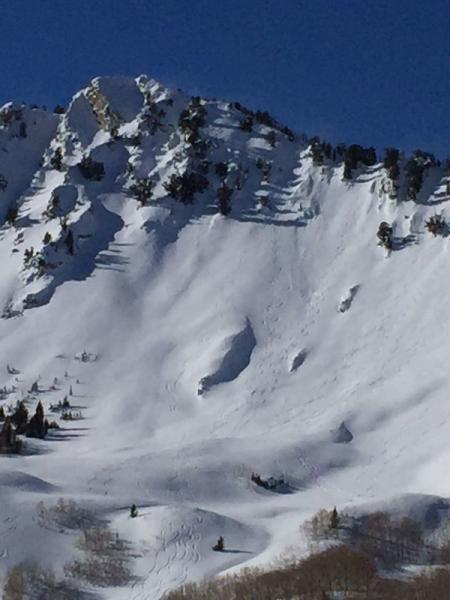 As we got to our spot to take off, I triggered a decent wind slab on the north side of the ridge. It was a couple feet deep at the crown and only half of it ran down into the trees. Also noticed a bigger one on Gobblers north face that happened while on the ridge running from the top and almost full track but seems wind slab as well.