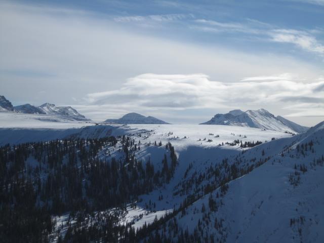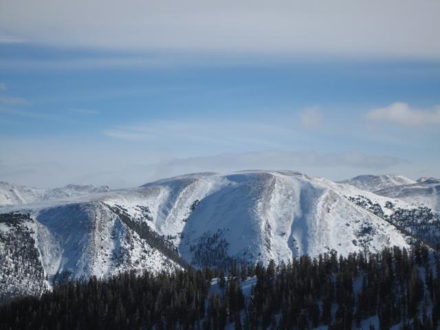 1. These large broad open areas are great places for the strong south winds to grab lots of snow and deposit it onto the leeward side where people like to ride. 2. There is usually no shortage of wind along the high terrain and much of the high peaks are scoured clean-kind of has that high Colorado look to it.