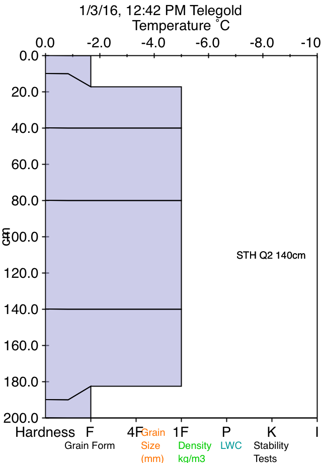 For the most part the snow was wind and sun effected. A wind crust was wide spread throughout Red Snow Cirque and in TeleGold (although pockets of good turns were available).