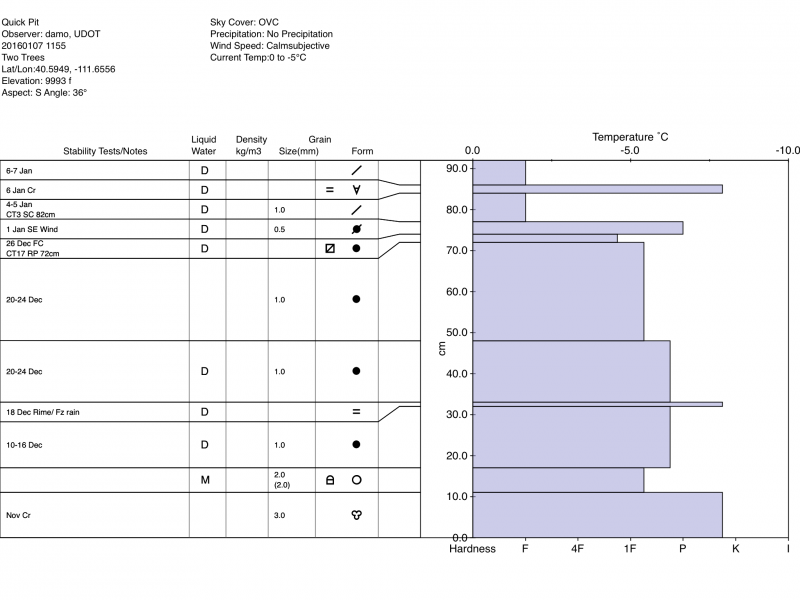 This a zone which had not (old snow) avalanched during the Christmas cycle. From the look of it, mid/ basal layers not likely to be of concern until the spring thaw. The 26 Dec weakness underlying the New Years wind pressed crust was thin and pretty subtle- only noticeable with shovel tests and seems to be gaining strength. Will have to see how the most recent crust/ HST reacts to future loading.