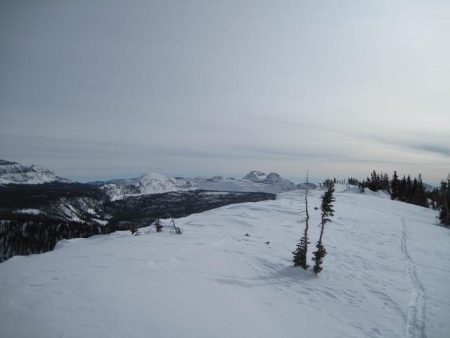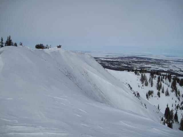 I spent part of the afternoon on the east side of Moffit Peak and the only thing of note were these shallow wind slabs that started up high off the ridge line and entrained weak faceted surface snow. Not a huge amount of snow with these , but enough to knock a rider off their sled in these narrow gully features.