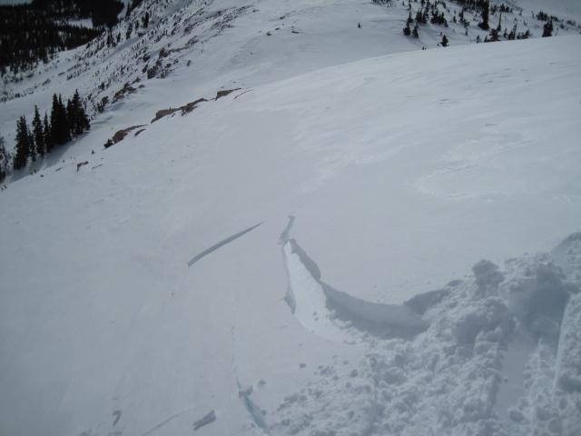 The slabs I was finding along the exposed ridge lines were breaking up to a foot deep similar to this one on an east facing slope.