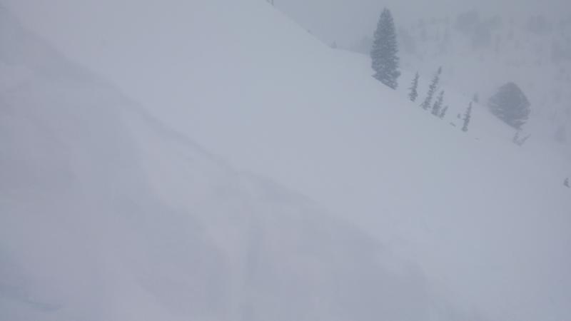 Sluffing of new snow on steeper slopes (35 degrees+), only involving the most recent accumulation (4-6 inches). 10-20 ft. shooting cracks observed in one area not effected by wind at subtle convex roll, SE slope in Lower Mary Ellen.