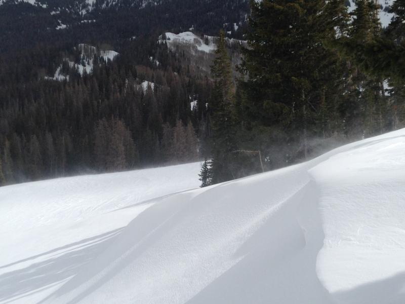 Photo of wind transport onto a Northeast face above 9500 ft.