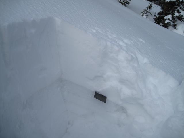 Somewhere around two feet of new snow has fallen this past week and has settled out to a foot and a half in the Gold Hill area. A few different layers of changing densities and snow types and the new snow is bonding well to the old wet snow surface.