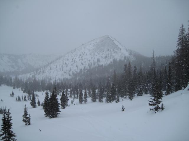 1. Not a great photo, but many areas are getting tracked up and some new snow would improve the riding conditions. 2. Most of the snow today was falling straight down with little wind even on the ridge lines.