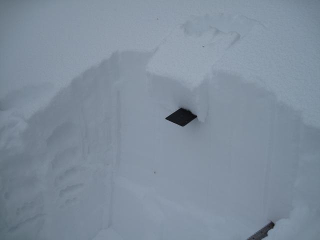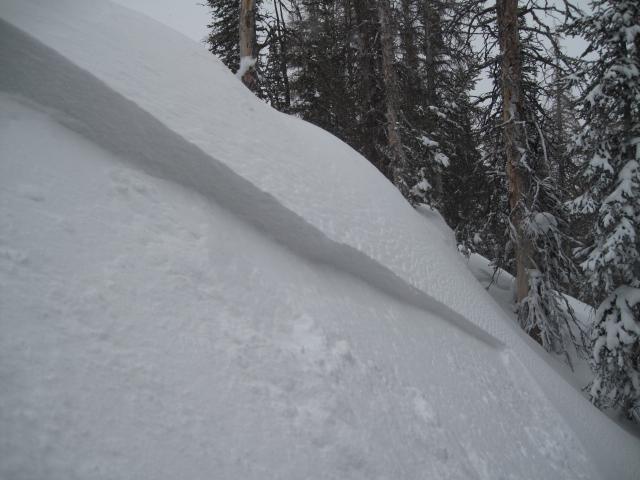Easy to trigger these "touchy" wind slabs that would break up to a foot deep. The slab was 4F hard on top and Fist hard on the bed surface. Strong gusty winds were even getting into the lower sheltered terrain.