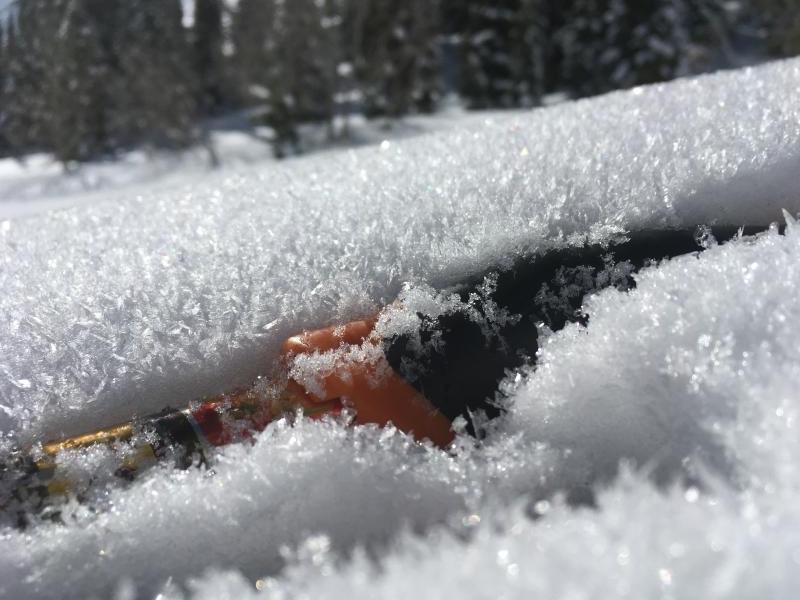 Photo 2: Surface hoar growth in low meadows (2 to 3 mm)