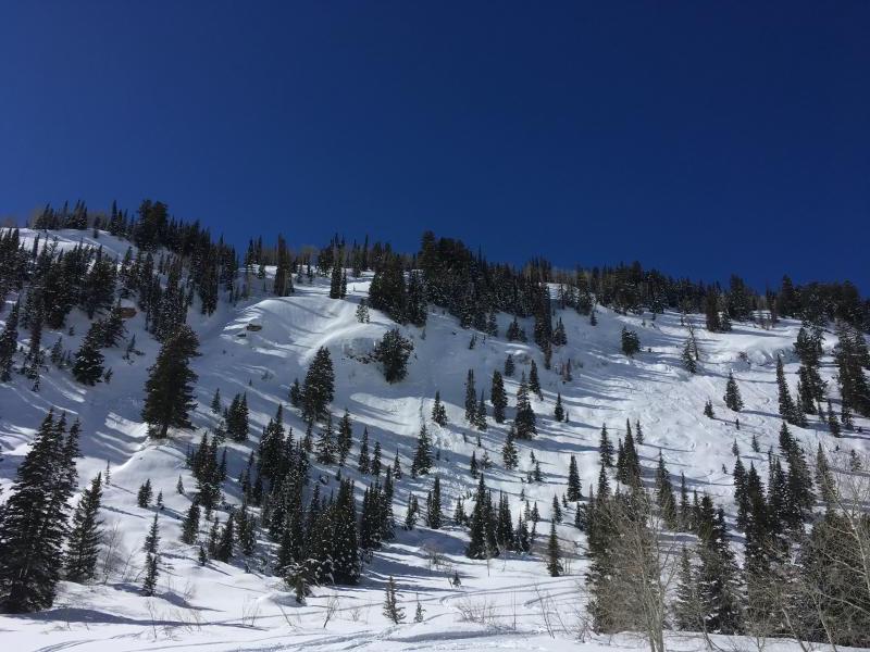 Photo 3: Wet activity on low elevation Northeast faces of upper AF canyon