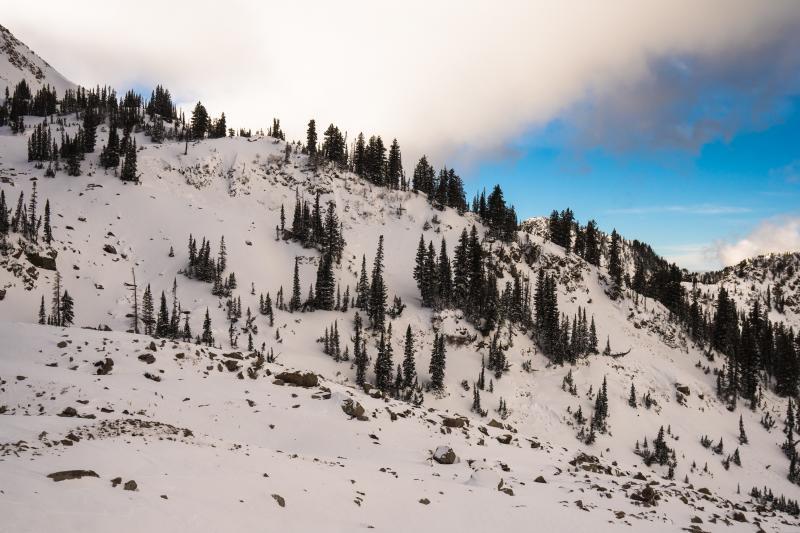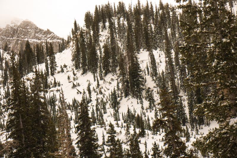 We also saw widespread avalanche activity on other slopes in that elevation band. This avalanche ran during the storm around 9,000', about 2' deep, 1000 feet wide crown face, 40 degree steepness, NE facing on a low spur ridge of Lake Peak and this is not too far above the creek.