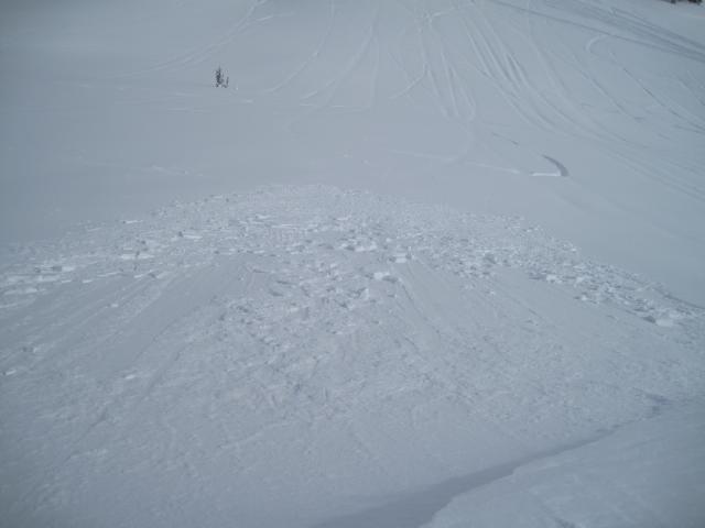 Some minor shallow soft wind slabs today just off the ridge lines. These were both natural and rider triggered slides and manageable in size, breaking just ahead of skis and sleds.