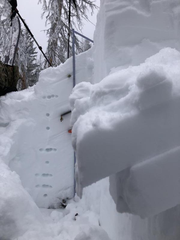 My observation today is from my several trips this week in the Hoyt and Weber canyon areas in zones at and below tree line, so, out of the real wind zone. Generally, I'm finding stable snow with several buried persistent weak layers in the top half of the snowpack, although there are some that are deeper. These weaknesses are generally smaller grained facets. The weakest layer is about 2 feet but I've only gotten this layer to propagate across an exteded column once and with hard effort to fail (ECTP25). I haven't gotten any layer to propagate across an Extended Column Test other than the one I just mentioned. Photos below are from Jan 23's ECT and just show the layers and shear quality of two weak layers, the botttom which has been the weakest layer in my travels. I pulled the blocks forward on the column, they did not slide on the column.