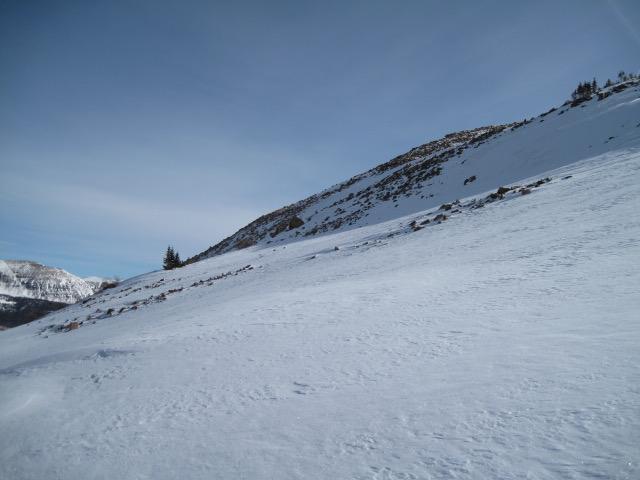 Snow cover still looking a little thin and rocky along the Murdock Mountain ridge line and plenty of collapsing sounds coming from the snow pack.