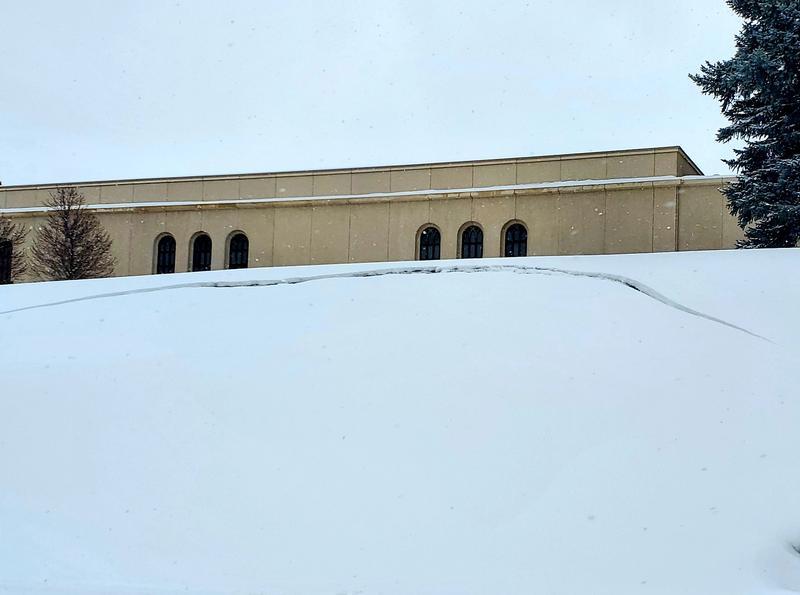 We were unable to get into the mountains today to ride but got to swing by a wedding at the Logan temple instead. We were pretty surprised to see a crown on the west facing hill below the temple. I didn't wade up there in my dress to measure, but it looked to be about 5" deep and broke on the facets at the lawn level. Crown was about 30' wide and the cars below were lucky that it wasn't steep enough to really get going.