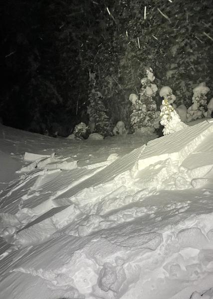 3" of new snow reported at Alta. Pink Pine didn't get as much but wind deposits were variable in the area. Wind gusts were pretty strong as we skinned up the Pink Pine Ridge. We pushed on a couple of small cornices and noticed fracturing and unstable snow albeit only a few inches deep. Once at the top of Red Right Returning, we made some attempts to ski cut and jump on the snowpack to get it to react. After a few tries using two of us, we did get it to break and it propagated about 20' at the top at about 6-8" at the crown and ran full distance to the apron. Snow conditions underneath were solid crust and we skied down without any issues.
