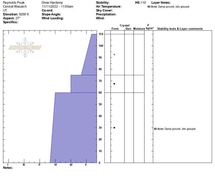 Went looking for the Monday Nov 7 rain crust and to see if any facets or weaknesses formed adjacent to the crust. None noted...likely because it was buried so quickly by subsequent snowfall. Worth continuing to monitor....Rain crust observed up to 8800', possibly exists to 9000'.