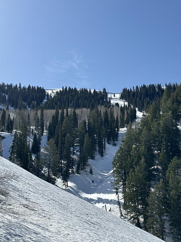 At mid and upper elevations surface conditions were variable and depth of snow was averaging 140-170cm at around 8000' on a North aspect in protected terrain. Generally there was a 2-4" refrozen crust (1F+) atop a couple inches of wet snow sitting on a dense bed surface. By noon, this crust was still very intact and hard (P) in open terrain on the north half of the compass. In forested areas, it seemed the overnight refreeze was much weaker with only a 1" crust (1F) and anything that was touched by the sun today was saturated to the lower crust about 6" down by late morning.