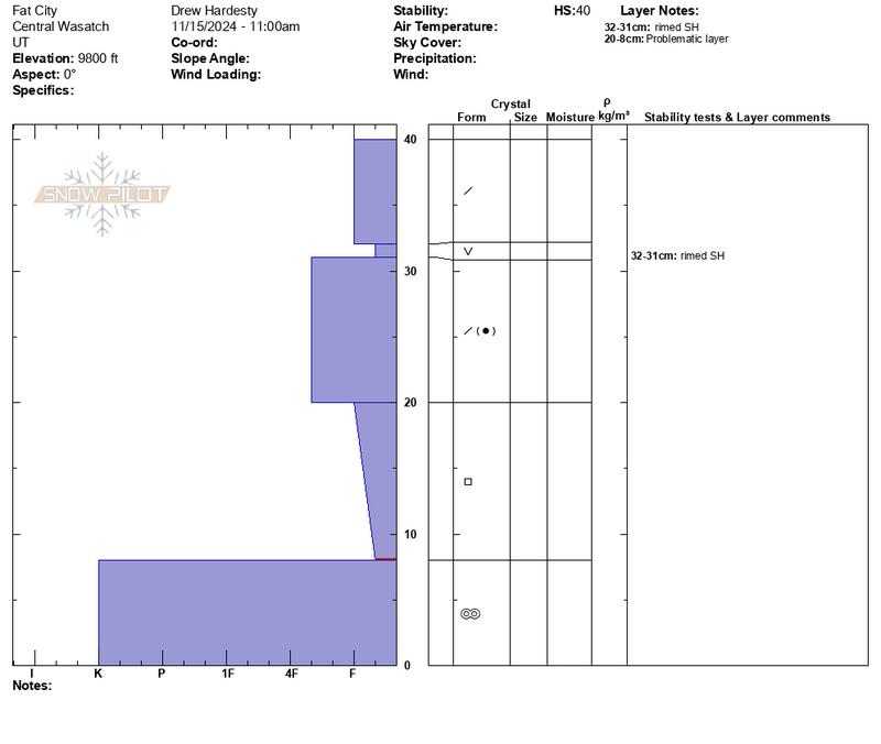 Above photo NNE aspect at 9000', no basal crust but very weak snow at the midpack and below.