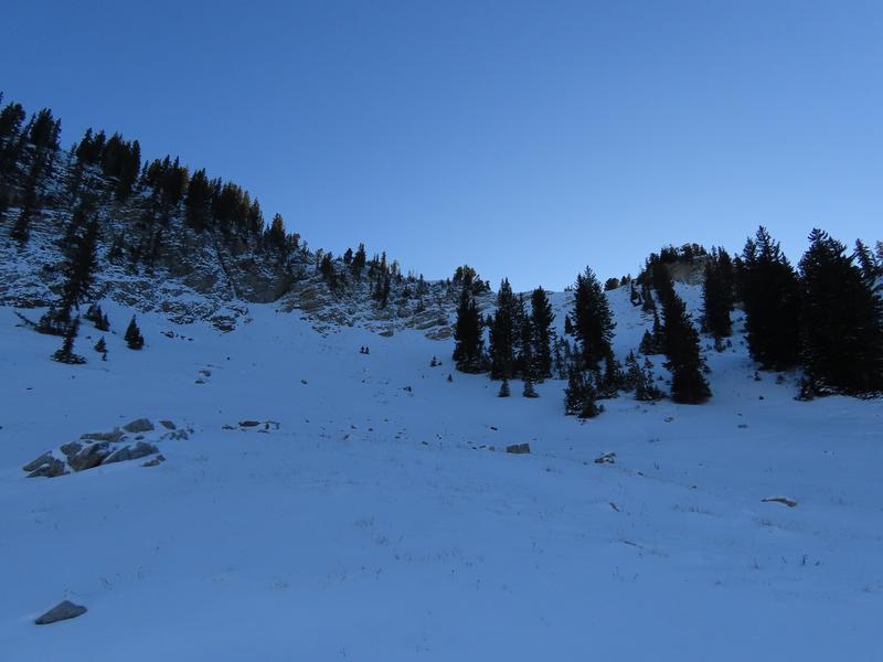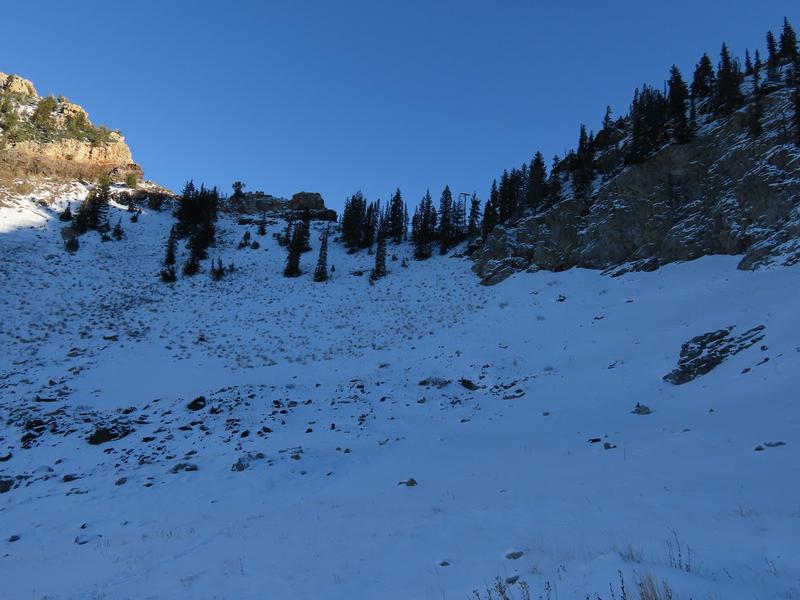 Cardiac area/LSB area showing well-connected snow coverage on N/NNE slopes