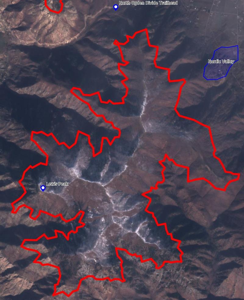 In my opinion, anywhere painted in white in these images is suspect, even more so if the upper end of the forecasted snow range comes to fruition. This includes much of the commonly traveled terrain on Ben Lomond (Cutler, Rodeo, etc.). Lewis Peak was relatively dry before the snow arrived earlier this week, but the ridgeline has old snow, and that same ridgeline loves to catch wind and make stiff pockets of wind slab. Old snow can also be found on the polar aspects around Mount Ogden/Snowbasin--think Banana Chute, Hells Canyon, upper Coldwater, etc. The snow coverage in those zones is a bit obscured by the shadows in the satellite imagery, but rest assured there's old snow there.