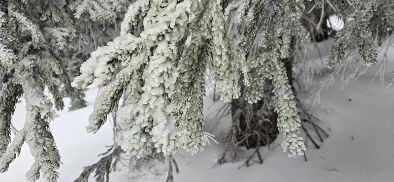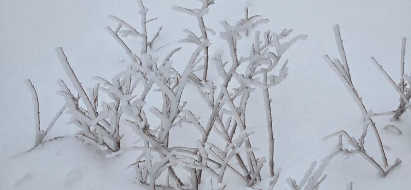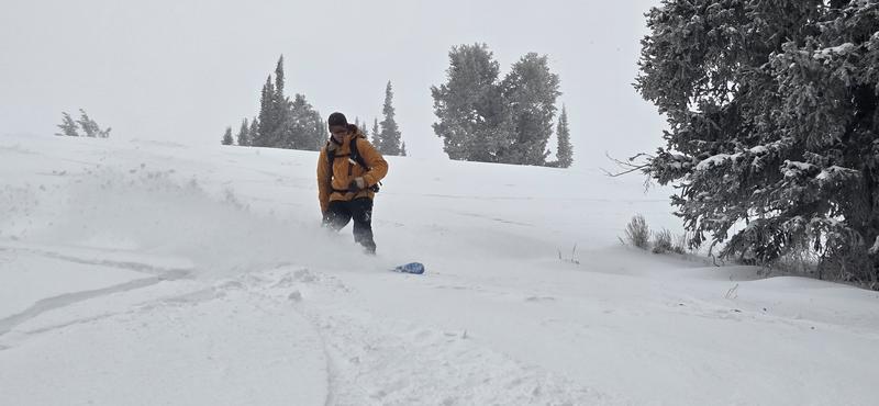 We made it out for some turns today in the Tony Grove Area. We found about 16 inches of snow in the campground area with 20-22 inches at the top of the beginner bowl. There was about 3 inches of new snow overnight capped with an 1/8th inch thick Rime Crust. It was rimeing heavily all morning, sticking to your goggles, clothes and yes, especially the snow surface. We still had a good time riding the breakable 1/8th inch crust but others were struggling to ride. Slightly better riding was found to the East of trees where the rime had not affected the snow surface. Regardless, it is still nice to get out in the snow.