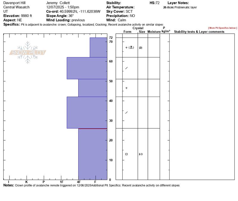 Avalanche crown profile - Davenport Hill - NE Aspect - 9900' - weak facets on the ground