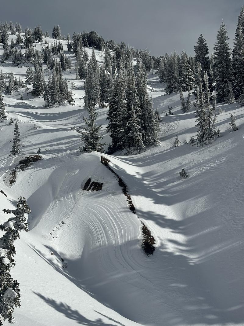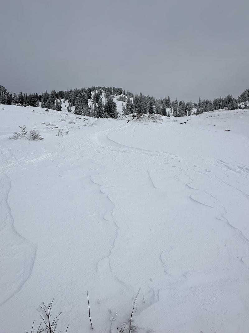 Looking ahead, the signs of instability may become less obvious, with fewer cracks and collapses, but the most suspect areas will be the ones that look best to ride. Much of the upper elevation north-facing terrain saw a lot of wind and is stripped along ridgelines, but a few hundred feet below ridgelines or in more protected terrain features, the poor structure still exists. The strong over weak setup remains and will continue to be an issue.