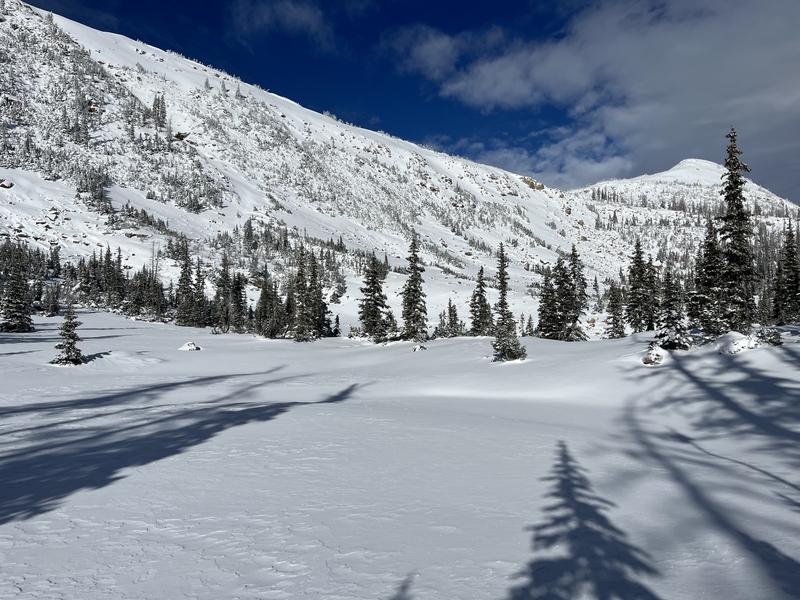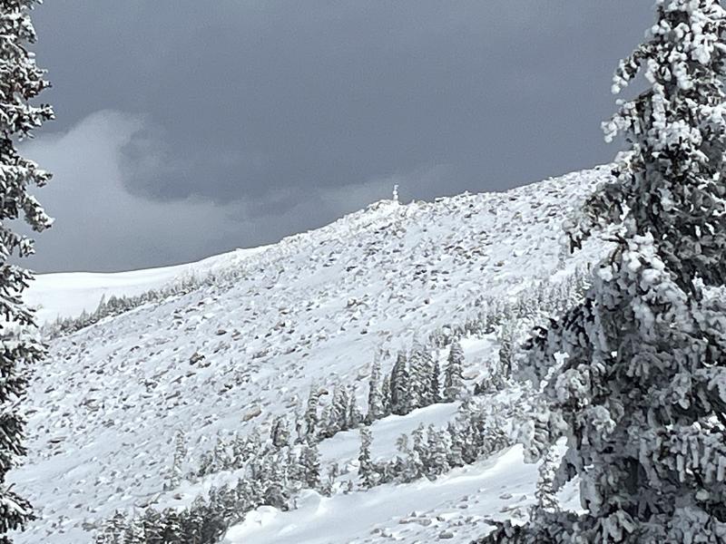 The storm this weekend brought heavy moisture rich air and dense snow making the Uintas look like something out of the Cascades. Strong northwest winds have been hammering away at the exposed peaks and ridges as the shoulder on Bald Mt. is mostly stripped of snow.