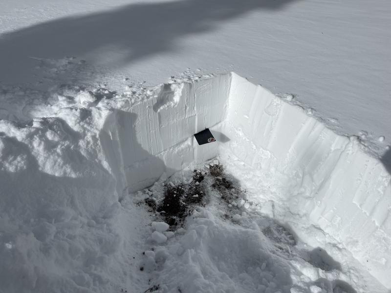 The old snow surface marked with the crystal card is now buried with a fairly dense slab and I experienced widespread collapsing on this weak layer.