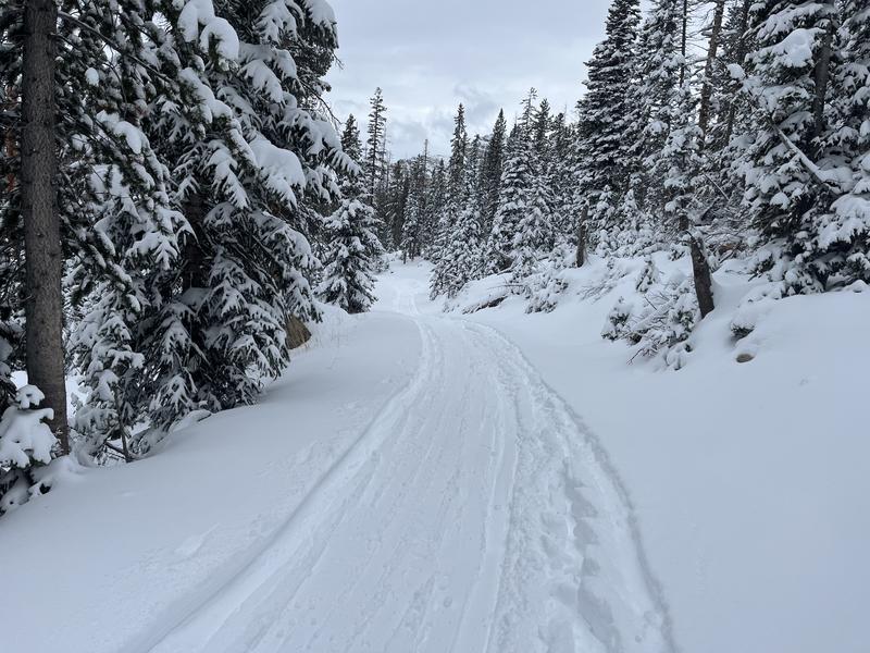 Around 4-5" at the trailhead this morning with upwards of 10" up near 10,000'.